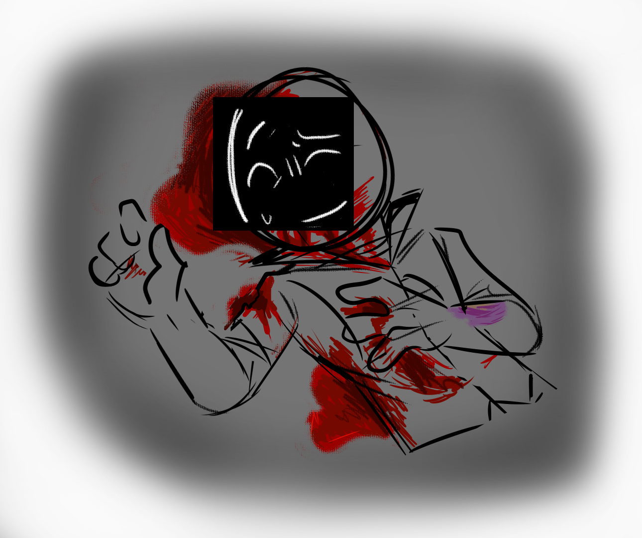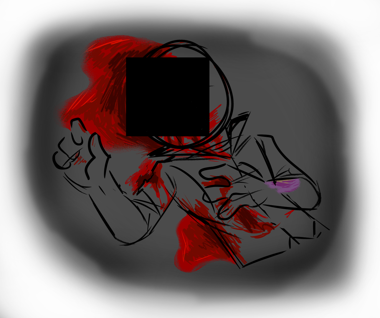 You managed to get a glimpse of one of his bloodshot red eyes in between his crooked fingers, you did some damage, but from how furious he looked you knew it wasn’t enough you had to stop him or he’d stop you from breathing, you contemplate standing in front of his scrunched figure, him and the other must’ve traumatized or scared the others, he shot and kicked Dorian two times, they went through your belongings, did they noticed the unexplained glitched drawer?, they threw some of your objects to the ground, they deserve this you let the rage overcome you, before you knew it.